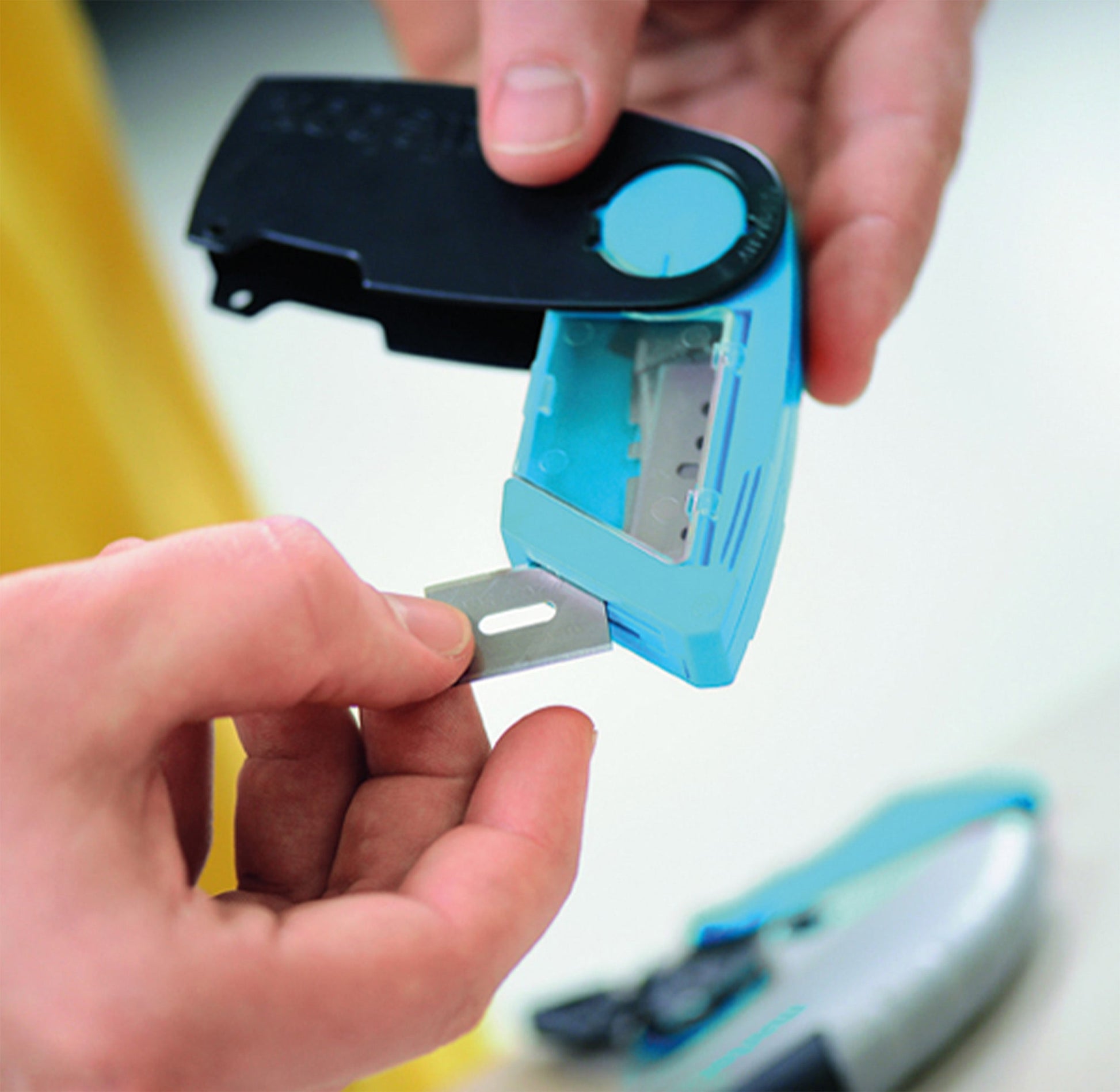 - Safe storage for used blades